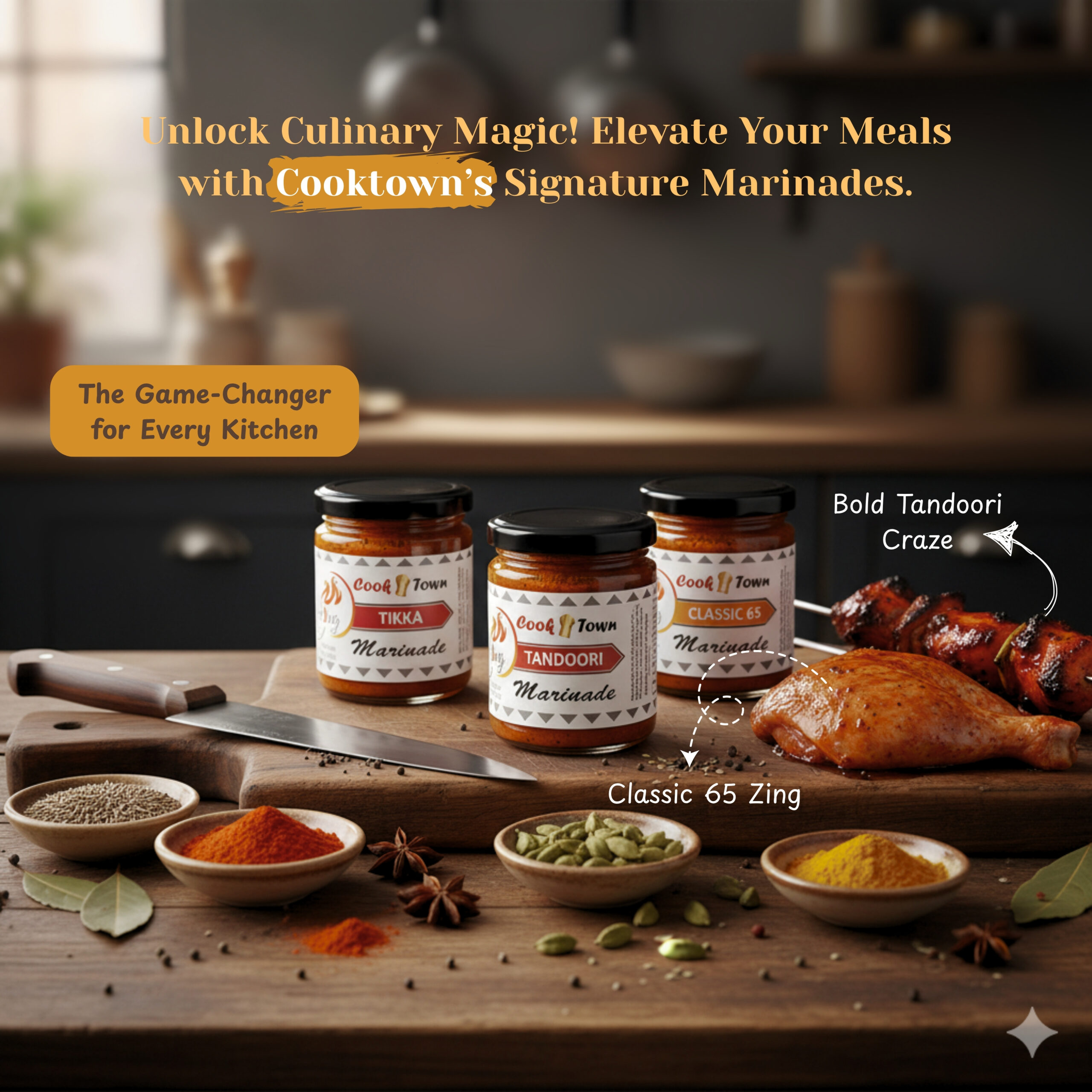Bring home the flavors of India with our Indian Classic Marinade Combo featuring Tandoori, Tikka, and Classic 65 blends.